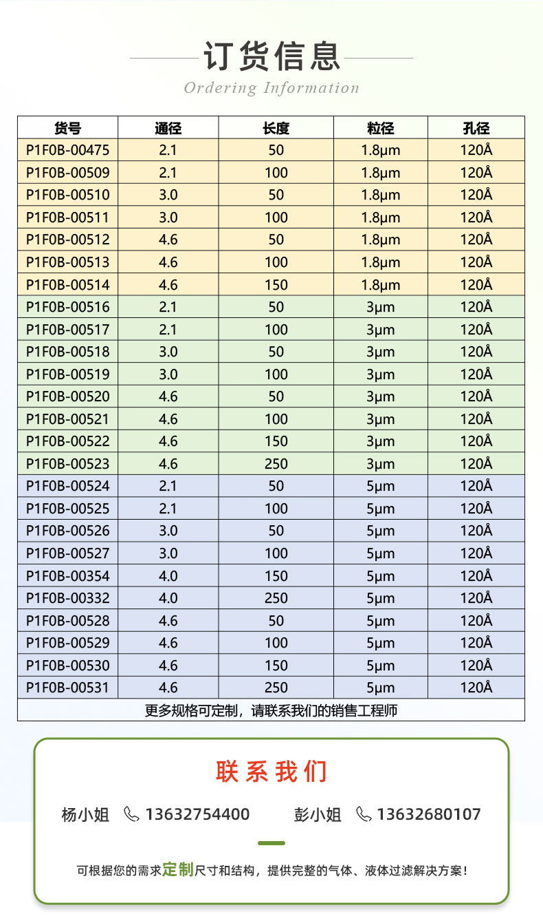 常用產(chǎn)品規(guī)格(mm) 2.1*50、2.1*100、3.0*50、3.0*100、4.6*50、4.6*100、4.6*150、4.6*250
