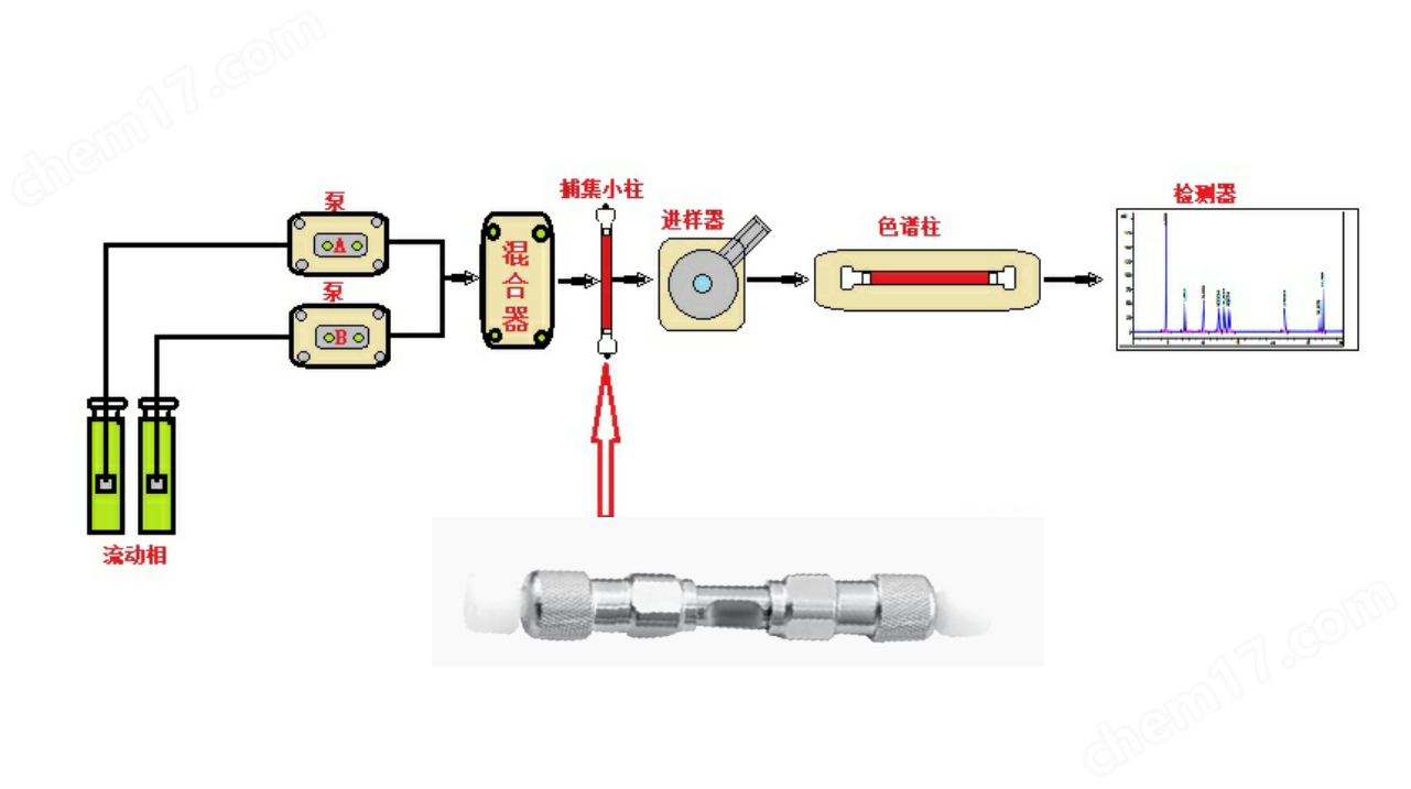 用流動(dòng)相低速?zèng)_洗捕集柱(如 0.3 mL/min 乙腈);